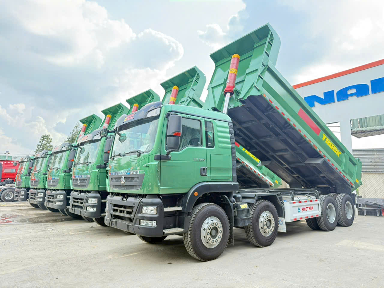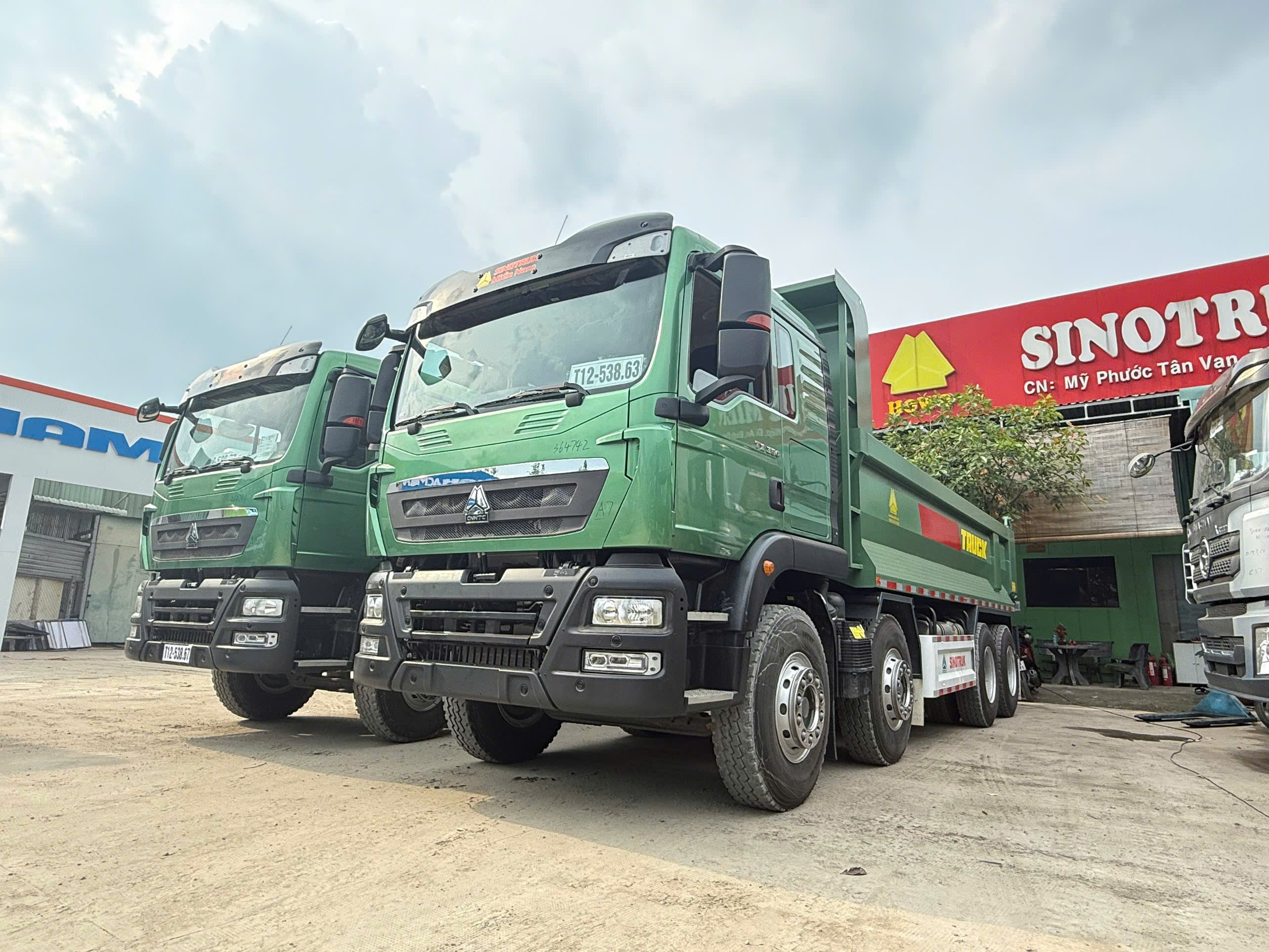 Xe ô tô tải tự đổ nhãn hiệu CNHTC loại 4 chân (8x4) thùng đúc cabin TX.